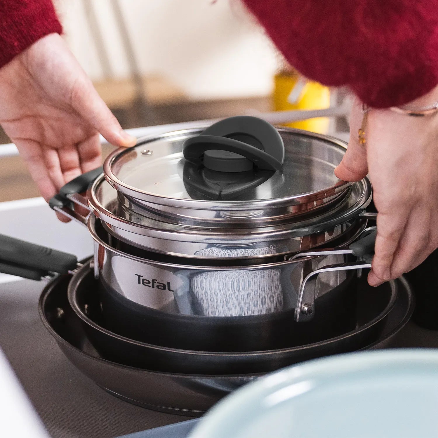 Tefal's most space-saving fixed-handle pots & pans for easy stacking and convenient storage in your kitchen cabinets.