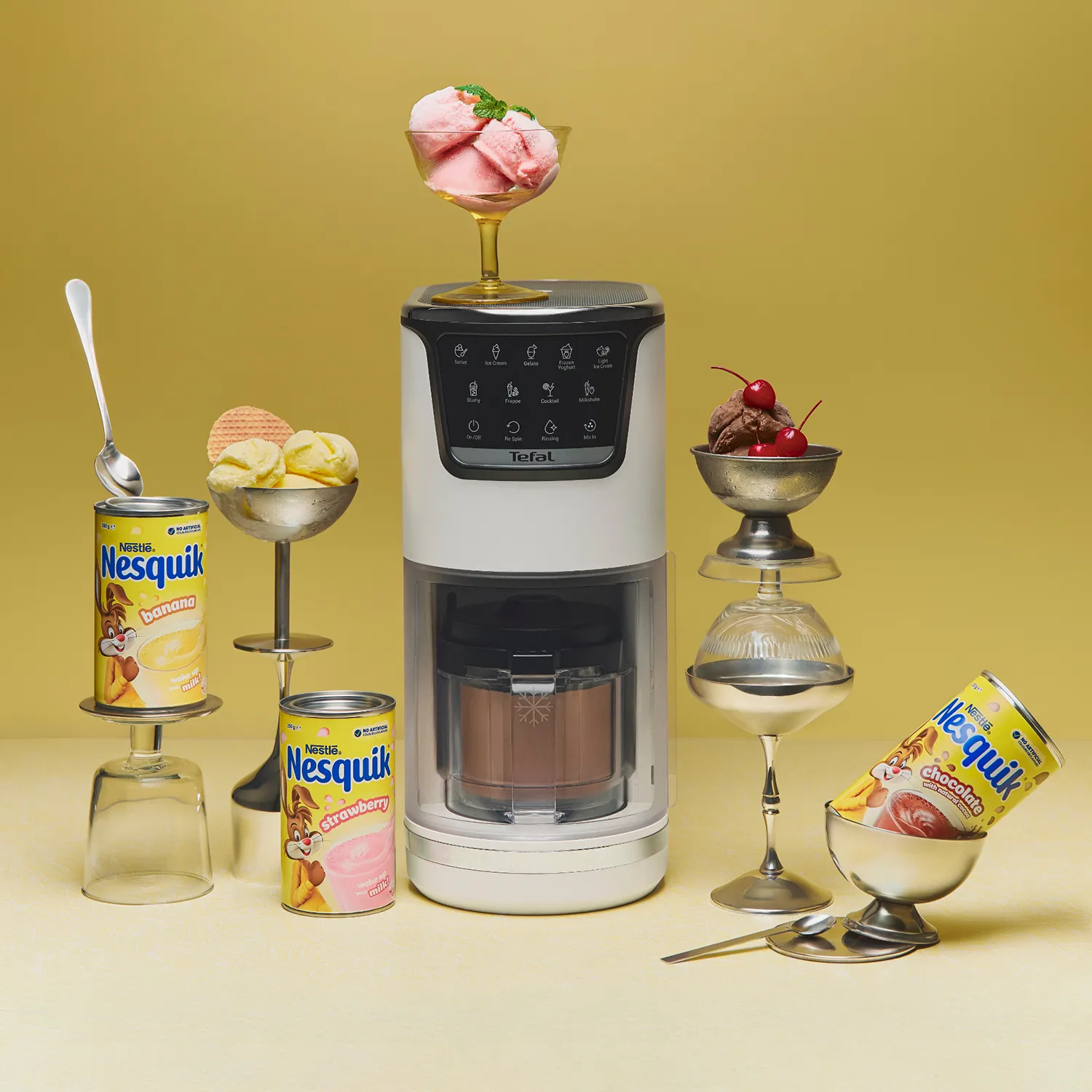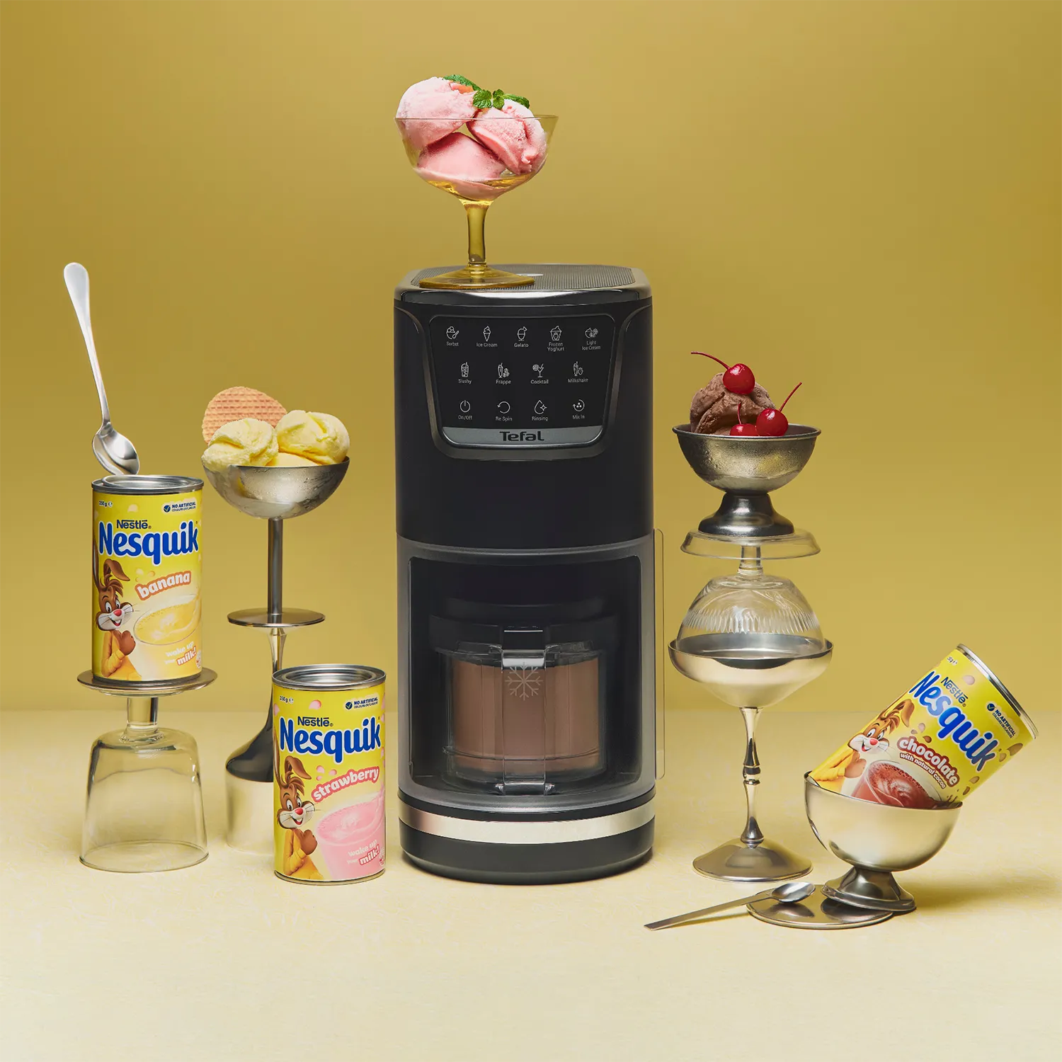 Make smooth, scoopable Nesquik ice cream at home with the Tefal Dolci Ice Cream Maker. Mix, chill and repeat for a simple frozen dessert everyone will love.