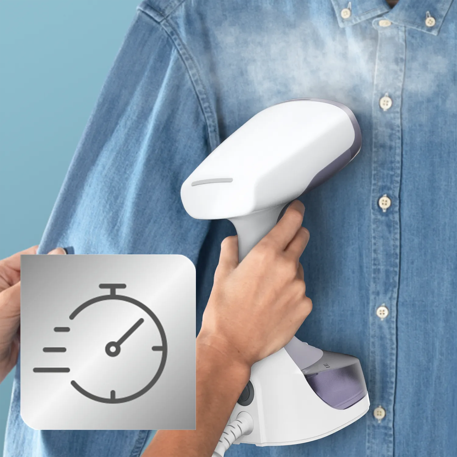 - A powerful and highly efficient handheld steamer with 1400 W power and steam output up to 25 g/min