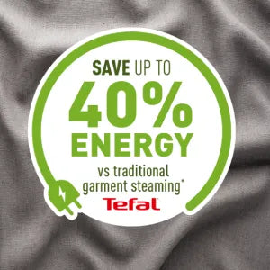 - ENERGY-EFFICIENT: an automatic garment steamer that requires 40% less energy use than traditional steaming.**