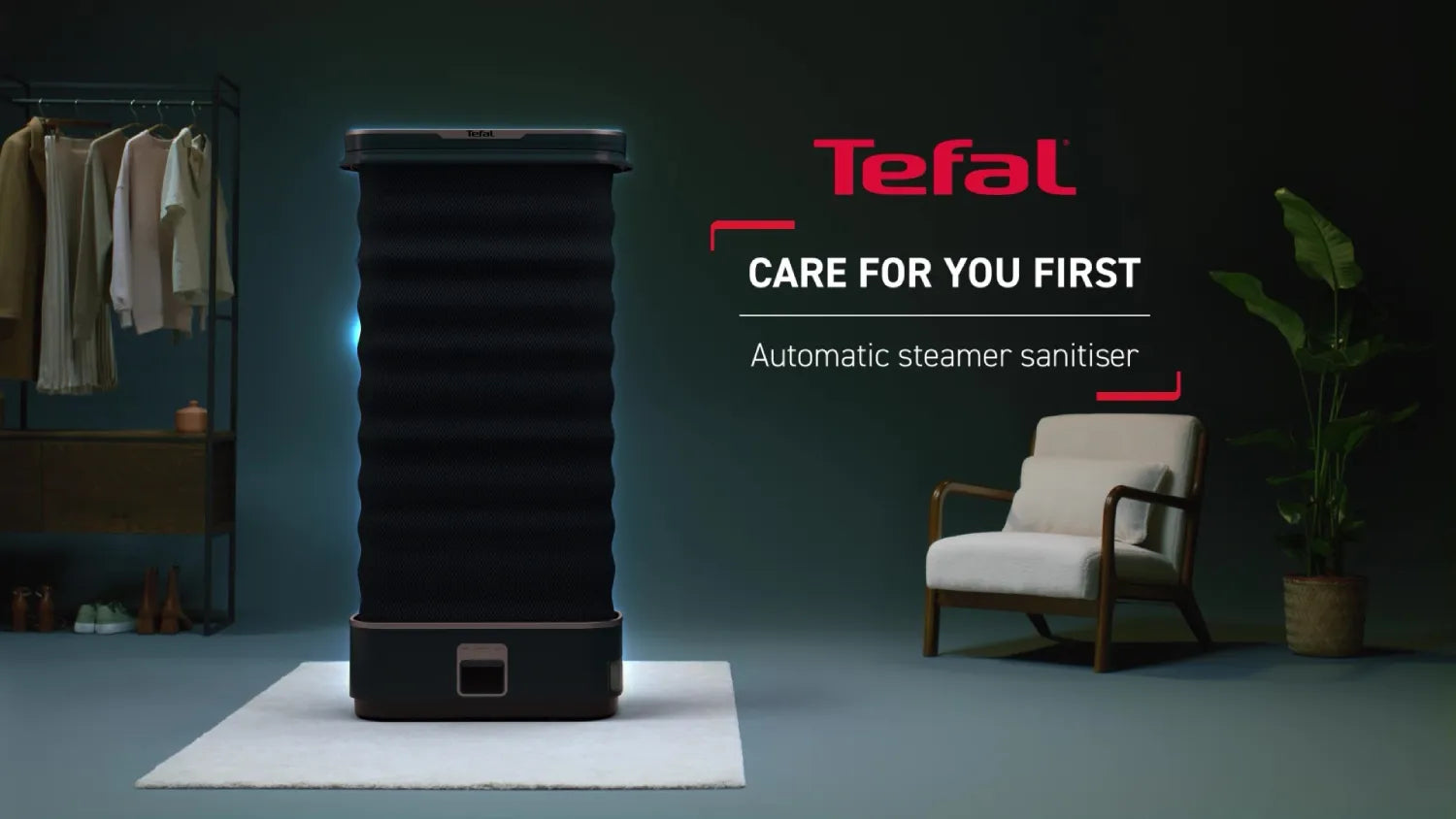 Discover the hands-off garment care solution that does the work for you: The Tefal Care For You First Automatic Garment Steamer. To refresh, sanitise, dewrinkle and dry all fabrics, even the most delicate—with an easy, all-natural and automatic process that reduces odours in 20 minutes and kills bacteria, viruses and germs in 40 minutes.