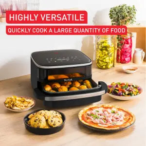 Discover Easy Fry & Pizza by Tefal, a large air fryer for endless air fried foods ready in a flash! Its large square basket ensures generous portions of all your favourite meals in no time. Made to feed even the hungriest of families, thanks to its spacious basket, Easy Fry's XL surface is designed to keep its countertop footprint small. And when it comes to taste, there's no contest! This air fryer is equipped with Extra-Crisp technology and double heaters for a crispy finish every time.