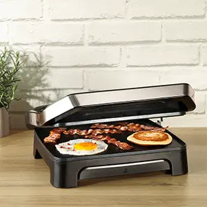 Three adjustable lid heights to accommodate all your culinary needs! Effortlessly melt cheese, cook eggs and pancakes, prepare loaded sandwiches, and so much more!