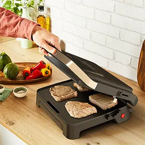 The grill heats up in no time to cook delicious grilled meals quickly and easily, thanks to its 2000 W of power. Featuring a large cooking surface (29 x 26 cm) that is ideal for 4-6servings.