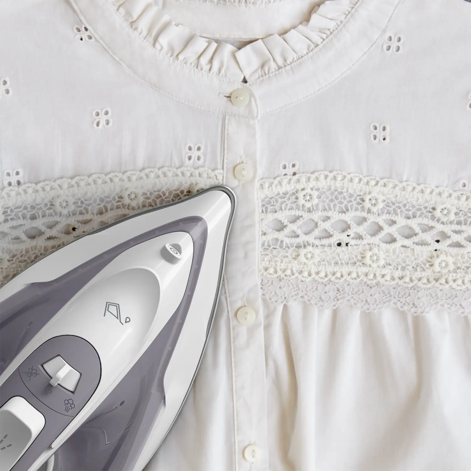 Introducing Virtuo 30, a high-performance 2000 W steam iron that delivers powerful steam for effortless results every time. Discover the perfect steam iron package for exceptional garment care: Highly efficient wrinkle removal, a fast 30-second heat-up time, high continuous steam output, a powerful steam boost, an easy-gliding ceramic soleplate, anti-drip protection, a pointed precision tip and more.
